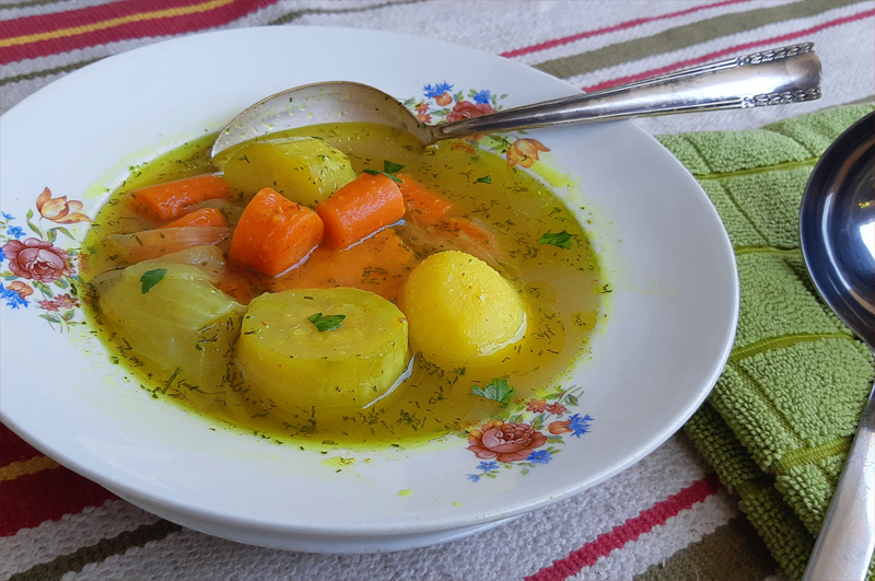 מבחר ירקות במרק נפלא עם תבלינים טריים, טעים ומנחם