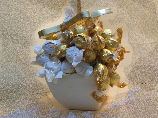 שוקולד מובחר בכלי קרמיקה טעים ונמס בפה, עם סרט זהב מעור, מתנה מושלמת ומתוקה!