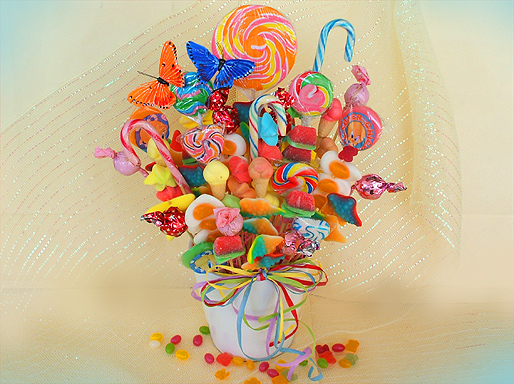 זר מתוק עם סוכריות גומי בצבעים מרהיבים,עם נגיעות שוקולד בטעמים ללא פשרות,שלל צבעים ריחות וטעמים,עם פרפרים מרחפים, להפתיע ביום הולדת, או סתם בלי סיבה, מידות הסידור כ- 28/30